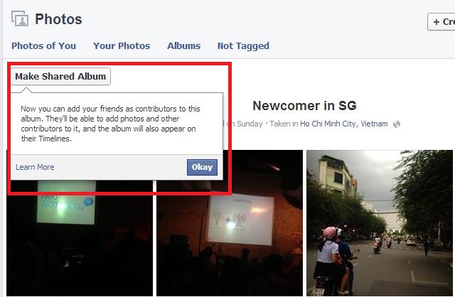 Facebook vừa cho cập nhật tính năng Shared Photo Album đến một số người dùng nhất định vào thứ Hai tuần này và sẽ mở rộng cho toàn bộ Facebook users trong thời gian sớm nhất. Với chức năng này, người dùng có thể tạo một album ảnh trên Facebook và cho phép bạn bè được chỉ định có thể upload ảnh vào album đó.